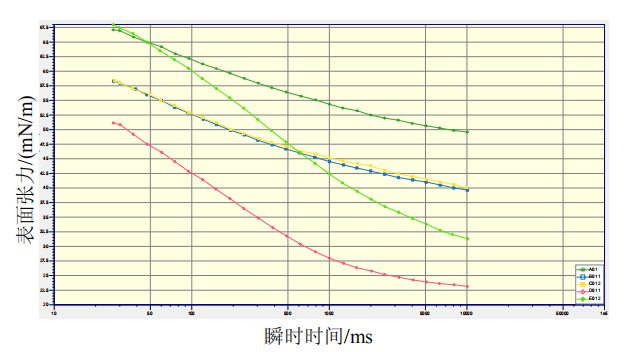 > 正己醇聚氧乙烯醚硫酸鈉、正己醇聚氧丙烯醚硫酸鈉水溶液平衡表面張力、動(dòng)態(tài)表面張力測(cè)定(二)