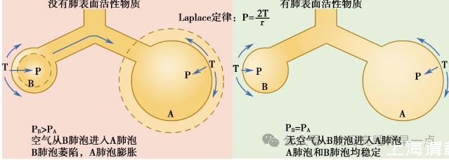 由上述公式可知,在T相同的情況下,肺泡半徑r越大,則肺泡液氣界面的壓強越??;肺泡半徑r越小,則肺泡內(nèi)液-氣界面的壓強越大。