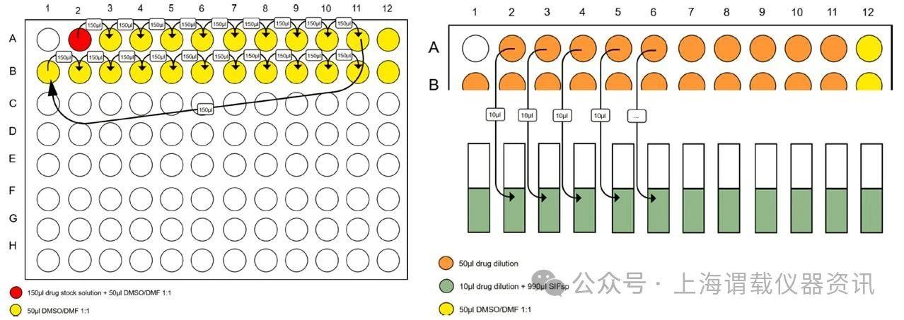 圖2、左邊的圖表示的是采用移液槍將樣品(難溶性的兩親化合物)轉(zhuǎn)移到kirbon公司的96孔板上測試其表面張力。右圖表示的是采用了改進的制備難溶性的兩親性化合物的表面張力的方法。