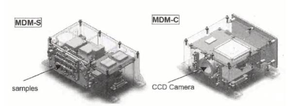 日本計劃在SLATS衛(wèi)星上搭載環(huán)境效應(yīng)探測器,進(jìn)行空間環(huán)境的監(jiān)測及材料暴露試驗,這是首次在50 km軌道上開展材料暴露試驗。該暴露試驗通過兩個搭載模塊實施,分別為MDM-S和MDM-C(MDM為MateriasDegradation Monitor的縮寫),其中MDM-S是一個包含9種材料被動暴露試驗的樣品盒,而MDM-C是CCD,用于對暴露試驗中樣品的退化情況進(jìn)行拍照。