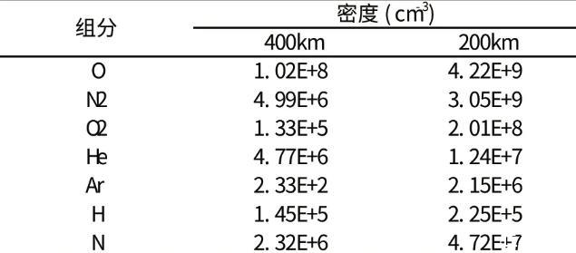 表1不同軌道高度下大氣組分密度(MSISE-90計算)
