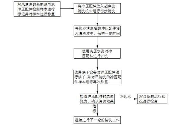 此沖壓配件的表面張力改善方法,就是通過將同一生產(chǎn)批次的沖壓配件放入超聲波清洗機(jī)中,超聲波清洗機(jī)產(chǎn)生的超聲波的高頻振動能夠產(chǎn)生微小的氣泡,這些氣泡在液體中爆裂時(shí)會產(chǎn)生沖擊力,對沖壓配件進(jìn)行初步清洗。然后,將經(jīng)過初步清洗的沖壓配件放入事先配置好的碳?xì)淝逑匆褐?,進(jìn)一步去除沖壓配件表面的氧化物和殘留物。再將經(jīng)過清洗液清潔處理過的沖壓配件取出,并使用高壓水流對清潔后的沖壓配件進(jìn)行沖洗,去除表面上的頑固污漬和顆粒,確保沖壓配件上的清洗液和殘留物被徹底清除。通過多重的清洗流程,有效提升新能源電池沖壓配件表面的清潔度,能夠達(dá)到理想的清洗效果,有效改善新能源電池沖壓配件的表面張力。