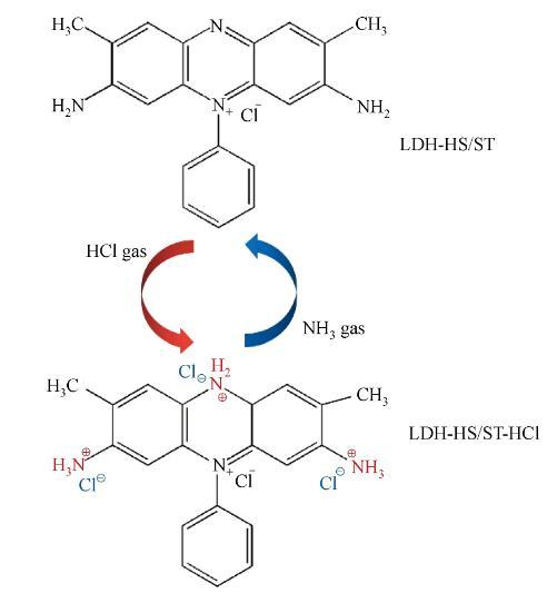 圖1 HCl和NH3氣體對(duì)LDH-HS/ST LB復(fù)合膜的化學(xué)反應(yīng)機(jī)理