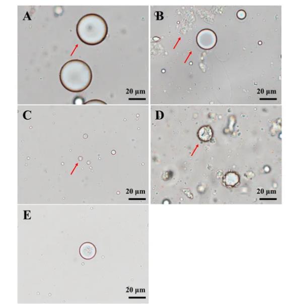通過(guò)顯微鏡觀察發(fā)現(xiàn)未添加橘皮素(TAN)和β-環(huán)糊精(β-CD)的乳液液滴粒徑較大,且界面處未產(chǎn)生液晶。脂肪酶存在下,脂質(zhì)消化過(guò)程中產(chǎn)生層狀液晶。當(dāng)該液晶與脂肪酶相互作用時(shí)會(huì)經(jīng)歷擠壓機(jī)制,導(dǎo)致液晶外殼破裂,液滴中未水解的油被排出。分別含有TAN、β-CD和TAN/β-CD的乳液均處于第一產(chǎn)物層狀液晶相的形成階段,在相同的消化時(shí)間內(nèi)消化行為相似。結(jié)果表明,TAN和β-CD都具有阻礙液晶相形成的能力,且TAN比β-CD的抑制能力更強(qiáng)。且TAN和β-CD的共存導(dǎo)致液滴表面液晶相的形成顯著減少。