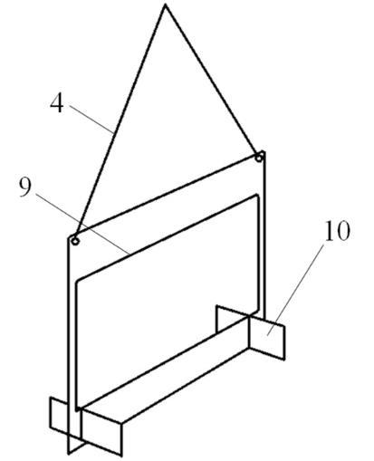 拉力框的設(shè)計(jì)是本次測(cè)試能否成功的關(guān)鍵之一,其結(jié)構(gòu)如圖3,與通用的拉力框有很大不同。其形狀如漢字中“口”字的形狀,由厚0.25mm薄鋁片制成。上部底緣稱之為刀口(9),長(zhǎng)l=50mm,刀口與液面接觸后拉起液膜(2)。拉力框兩側(cè)各寬3mm,其作用是保持拉起的液膜的穩(wěn)定,使之不會(huì)過早斷裂。拉力框底部設(shè)有張開的與框面垂直的翼片(10),可防止拉力框擺動(dòng)。拉力框通過輕軟細(xì)線懸掛于力敏傳感器(5)上,通過拉動(dòng)懸線(4),可調(diào)整拉力框與液面的平行度。