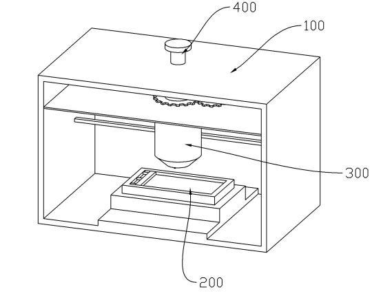 本實(shí)施例通過設(shè)置外殼100、涂片臺200和滴液機(jī)構(gòu)300配合,在進(jìn)行滴液操作時,使滴液筒310繞第一方向轉(zhuǎn)動,當(dāng)?shù)我和?10轉(zhuǎn)動時,將促使副筒320和外筒330沿第一方向移動,且此時副筒320移動使滴液腔340體積變小,外筒330移動使第一空腔350體積變大。而滴液腔340體積變小將使滴液腔340內(nèi)的待檢測液從出液口311擠出,由于滴液筒310繞第一方向轉(zhuǎn)動,因此從滴液腔340內(nèi)推出的待檢測液也將轉(zhuǎn)動,進(jìn)而使得當(dāng)待檢測液沿第一方向靠近涂片臺200的一端與涂片臺200接觸時,隨著滴液筒310的持續(xù)轉(zhuǎn)動,將在滴液筒310與待檢測液連接的一端形成一個扭轉(zhuǎn)力,進(jìn)而促使待檢測液滴落,避免液滴因其表面張力的作用不容易斷開,且在進(jìn)行滴液操作時,第一空腔350體積變大后,第一空腔350內(nèi)部將產(chǎn)生負(fù)壓,進(jìn)而使外界氣體能夠從進(jìn)氣口331進(jìn)入第一空腔350內(nèi),而當(dāng)氣體從進(jìn)氣口331經(jīng)過時,隨著滴液筒310的轉(zhuǎn)動,氣流將在出液口311的周向方向上產(chǎn)生一個擠壓力,進(jìn)一步促使液滴與出液口311脫離。