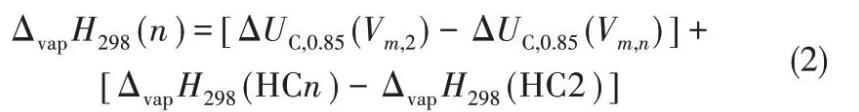 綜合考慮庫侖力和范德華作用力,經(jīng)過一系列復(fù)雜的推導(dǎo),得到了[Cnmim][Tf2N]汽化焓ΔvapH298的計算公式