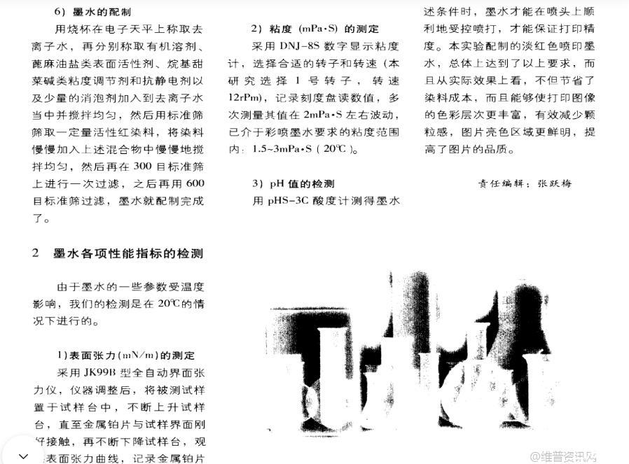 經(jīng)過(guò)多次測(cè)量,其表面張力儀均在35mN/m左右波動(dòng),已介于彩噴墨水要求的表面張力范圍30-50mN/m(20攝氏度)。
