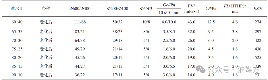 構(gòu)建的環(huán)保非水基鉆井液,適用油/水比范圍寬,抗污染能力強,抗溫達180℃,可用于環(huán)保要求嚴(yán)格的作業(yè)區(qū)域。但是難以應(yīng)對溫度高于180℃井的作業(yè)需求,因此,仍需繼續(xù)研究抗溫性更強的環(huán)保乳化劑來滿足作業(yè)需求。