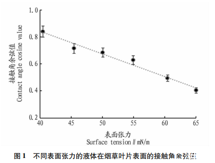 [方法]通過測定4種增效助劑使用下9種煙草常用化學(xué)農(nóng)藥表面張力值,以煙草葉片臨界表面張力為判定指標(biāo),篩選適用于不同化學(xué)農(nóng)藥的增效助劑種類和劑量。