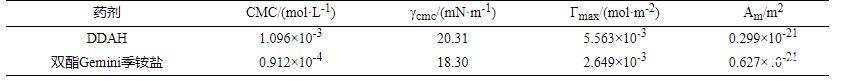 表1 DDAH與雙酯Gemini季銨鹽表面性能計算結(jié)果