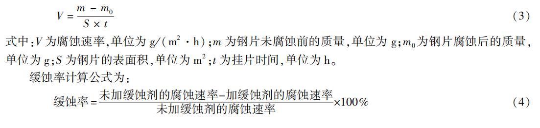 酸化是油氣田增產(chǎn)增注的重要措施之一,在石油工業(yè)中得到了廣泛的應(yīng)用。酸化使用的酸液注入地層的過程會嚴(yán)重腐蝕地面管道及井筒管壁,而且Fe3+會對地層產(chǎn)生永久損害,所以酸液中必須加入緩蝕劑。本實驗參照《酸化用緩蝕劑性能試驗方法及評價指標(biāo)》,采用靜態(tài)掛片法,對已提純的合成產(chǎn)物BQAS進(jìn)行緩蝕性能研究。掛片法是在實驗室給定條件下,通過用試片的質(zhì)量損失計算出腐蝕速率和緩蝕率,來研究緩蝕劑緩蝕性能的方法。