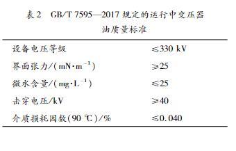 表2GB/T7595—2017規(guī)定的運(yùn)行中變壓器