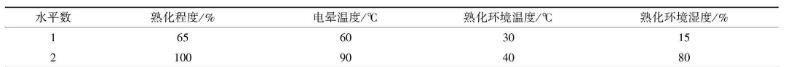 表2熟化前電暈影響因素正交試驗(yàn)設(shè)計(jì)