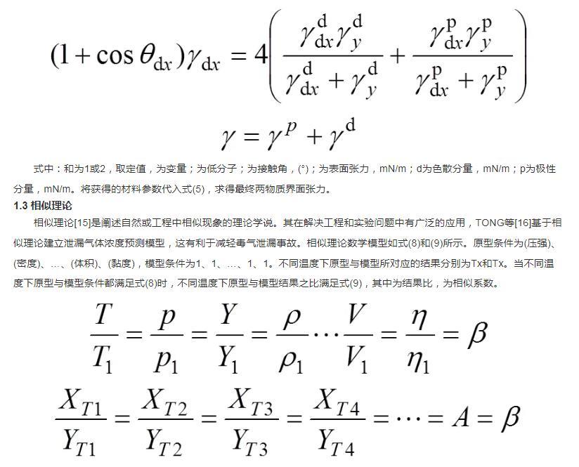 本文中原型與模型分別是指接觸角法與調和平均法,實驗材料及儀器相同,原型條件是測(測試溫度)、加(加熱時間)、靜(靜置時間)、(液滴體積)、(標準大氣壓);模型條件是測1(測試溫度)、加1(加熱時間)、靜1(靜置時間)、1(液滴體積)、1(標準大氣壓)。當相似系數(shù)為1時,采用調和平均法修正接觸角法。
