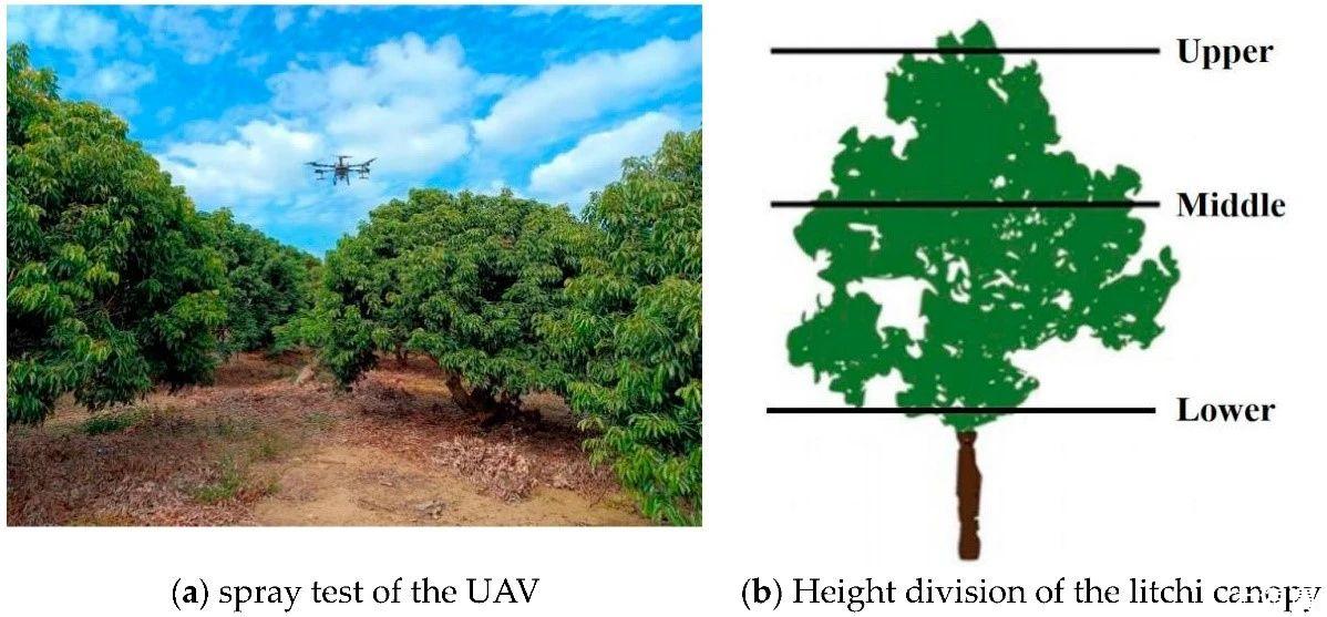 圖1.T30植保無人機(jī)噴霧機(jī)在荔枝園噴霧沉積測量。