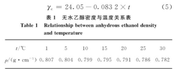 表1無(wú)水乙醇密度與溫度關(guān)系表