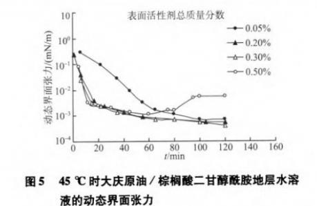 2.5棕櫚酸二甘醇酰胺降低大慶原油/水界面張力的性能