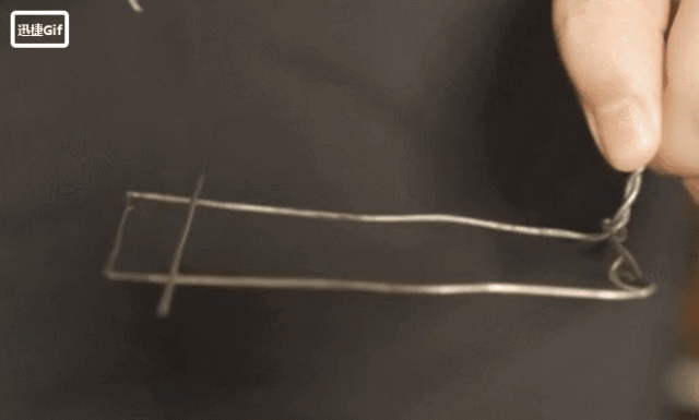 動(dòng)圖中的鐵絲本來同時(shí)受到兩側(cè)肥皂膜的吸引,而當(dāng)一側(cè)的肥皂膜被刺破時(shí),鐵絲立馬滾向另一側(cè),而吸引著它滾動(dòng)的正是存在于肥皂膜表面的拉力—表面張力。