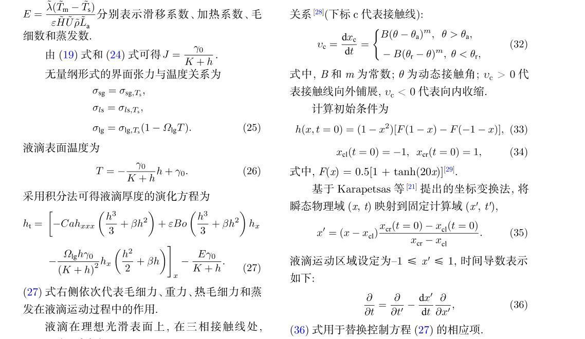 液滴運動區(qū)域設(shè)定為–1≤x'≤1,時間導(dǎo)數(shù)表示如下: