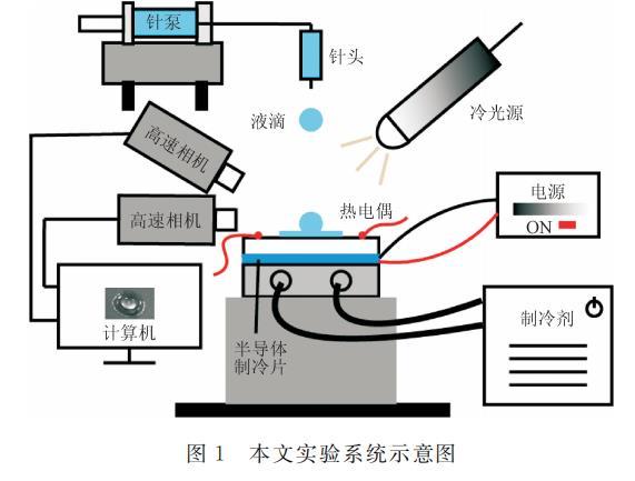 盡管如此,目前針對低表面張力液滴沖擊過冷水平壁面的研究仍有所欠缺。液滴在過冷表面上的沖擊和應(yīng)用在生活中也十分常見,例如噴霧凍結(jié)、高空中的過冷水滴沖擊機(jī)翼導(dǎo)致結(jié)冰、過冷噴涂等。本文針對乙醇液滴沖擊過冷親水水平壁面這一基本物理現(xiàn)象開展實(shí)驗(yàn),針對其鋪展動力學(xué)行為進(jìn)行分析與討論,旨在探究低表面張力對液滴沖擊過冷水平壁面的鋪展動力學(xué)行為的影響。這一研究有助于加深對固液接觸現(xiàn)象的理解,為更好的控制固液介面接觸提供有效指導(dǎo)。