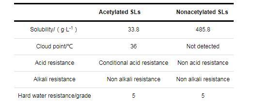 表3乙酰化SLs和去乙?;疭Ls的溶解性能和抗酸抗堿性