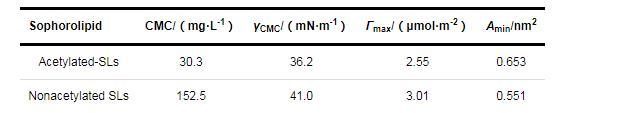 表4乙?;疭Ls和去乙酰化SLs在氣液界面上的吸附參數(shù)