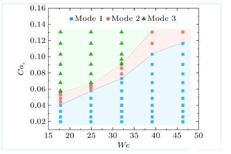 圖5不同韋伯?dāng)?shù)下的液滴模態(tài)圖