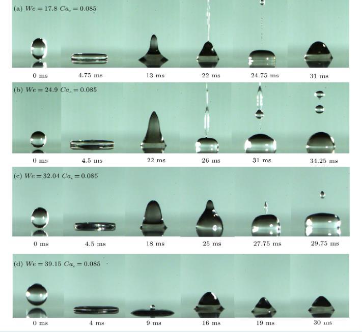 2.2韋伯?dāng)?shù)對(duì)液滴撞擊親水表面的影響
