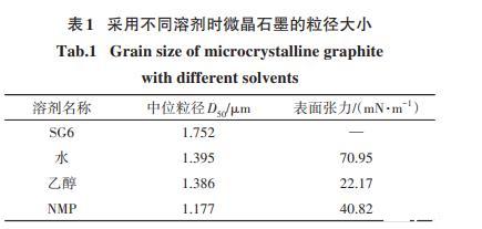 表1采用不同溶劑時(shí)微晶石墨的粒徑大小