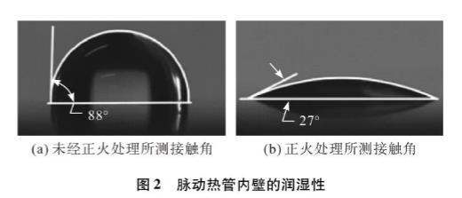 Qu等研究發(fā)現(xiàn),當(dāng)毛細(xì)管內(nèi)表面被包覆或被制造的有空腔或粗糙度時(shí),啟動振蕩運(yùn)動所需的過熱溫度和熱量降低,脈動熱管更容易啟動。Hao等研究了超親水和親水表面對脈動熱管傳熱性能和液塞運(yùn)動的影響。