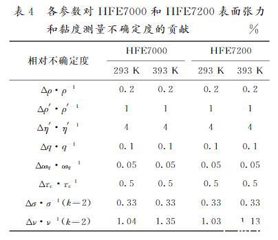表4各參數(shù)對HFE7000和HFE7200表面張力和黏度測量不確定度的貢獻%