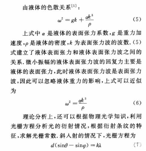 (2)理論上分析了表面張力波的光衍射效應(yīng),得到了衍射光場(chǎng)的解析表達(dá)式。根據(jù)衍射光場(chǎng)和表面張力波之間的關(guān)系,進(jìn)一步可求得液體的表面張力系數(shù)。