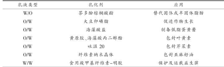 同時,脂肪也會給產(chǎn)品帶來獨特的風味、口感或其它偏好特性。想要在減少脂肪使用的同時保證食品的質(zhì)構(gòu)不被破壞成了廣大研究人員的一大挑戰(zhàn)。2020年,Yang等通過改變?nèi)橐耗z的結(jié)構(gòu)屬性,設計出了一款低脂蛋黃醬產(chǎn)品,拓寬了制作低脂肪食品的方法,使低脂產(chǎn)品的全面推廣成為可能。在包封生物活性成分方面,Wang等以黃原膠和海藻酸丙二醇酯(Propylene glycol alginate,PGA)為穩(wěn)定劑,構(gòu)建出的O/W乳液將具有多種有益功效的葉黃素成功包封。此外,芹菜素、亞麻籽油等也通過乳液包封的形式提高了生物利用度,拓寬了應用范圍。