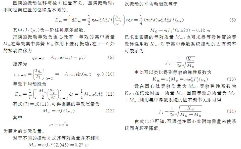 MAMs由一個或多個微小中心質量塊粘結在薄膜上組成的二維周期性陣列結構構成。研究表明,衡量其隔聲降噪效果的傳遞損失(TL)與多種參數相關,包括幾何尺寸、質量塊分布、中心質量塊質量、薄膜厚度和薄膜預應力(表面張力)等微結構參數?,F有研究對附加質量塊非中心布置和多質量塊布置的影響有所涉及,但仍缺乏實驗驗證。本文在現有成果基礎上,通過有限元仿真與實驗對比,研究由彈性薄膜和質量塊構成的MAMs的隔聲特性。