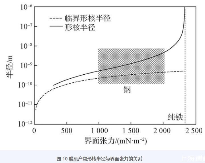 圖10脫氧產(chǎn)物形核半徑與界面張力的關(guān)系