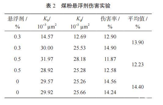 表2煤粉懸浮劑傷害實驗