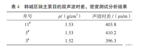 表4韓城區(qū)塊主要目的層聲波時差、密度測試分析結(jié)果