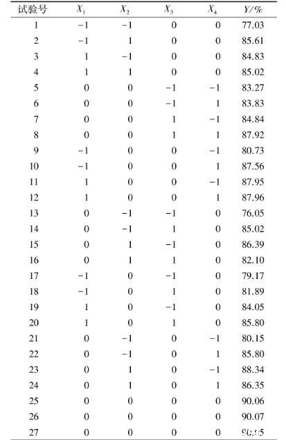 表2響應(yīng)面試驗(yàn)方案及結(jié)果