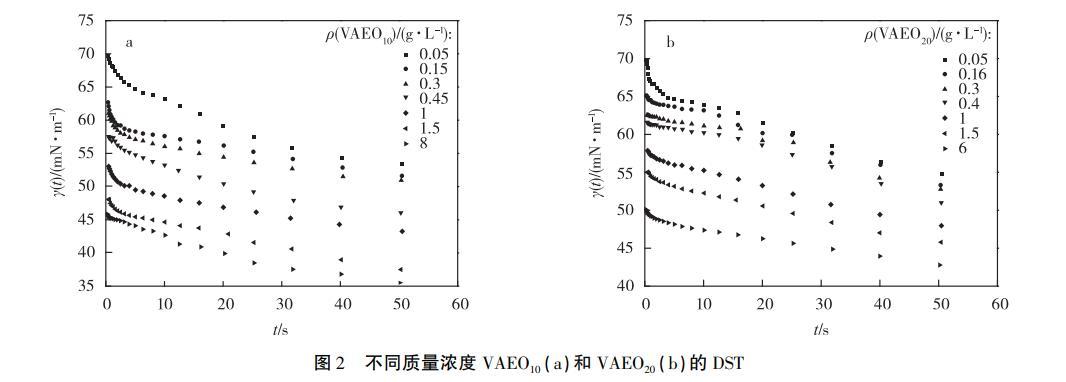 2.2不同質(zhì)量濃度VAEO的動(dòng)態(tài)表面張力