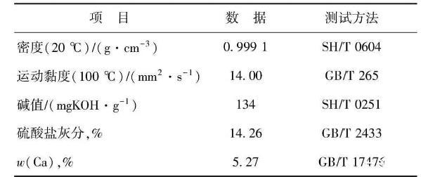 基礎(chǔ)油:HVIⅡ-10,HVI750,HVI150BS,分別用A,B,C表示,其基本性質(zhì)見(jiàn)表1。添加劑為烷基水楊酸鹽復(fù)合劑(簡(jiǎn)稱(chēng)復(fù)合劑),其理化性質(zhì)見(jiàn)表2。以上基礎(chǔ)油和添加劑均由中國(guó)石化潤(rùn)滑油(上海)研究院提供。