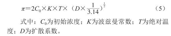 式中:C0為初始濃度;K為波茲曼常數(shù);T為絕對(duì)溫度;D為擴(kuò)散系數(shù)。