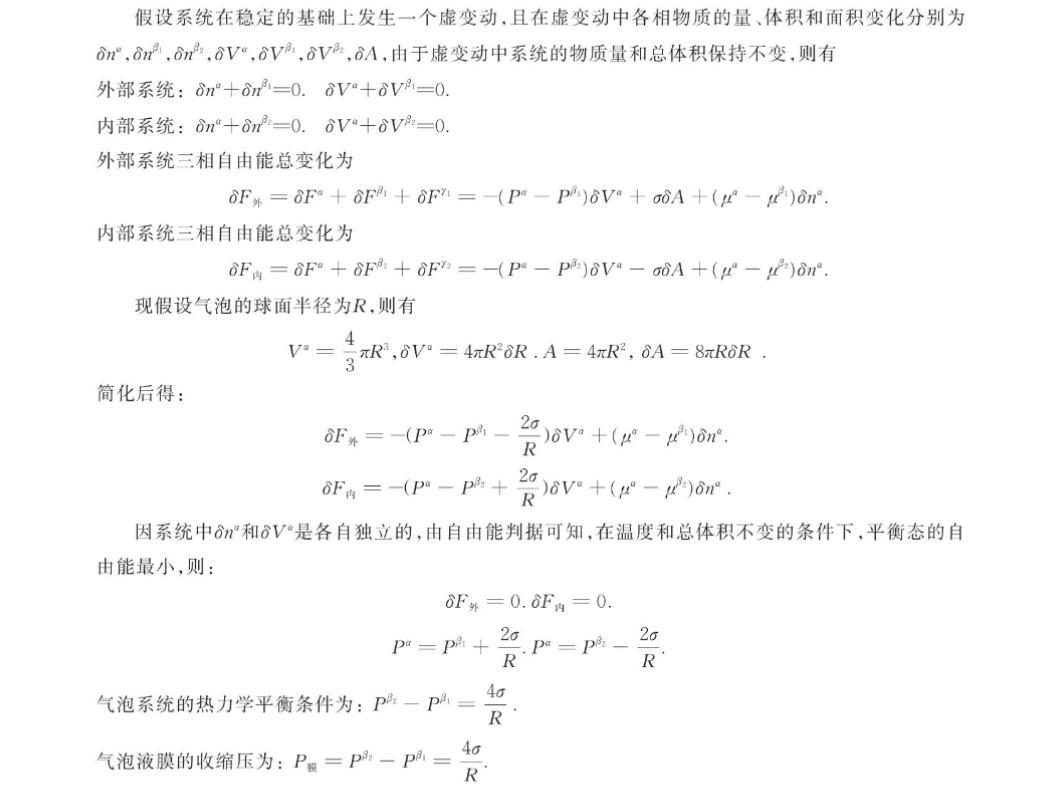 假設(shè)系統(tǒng)在穩(wěn)定的基礎(chǔ)上發(fā)生一個虛變動,且在虛變動中各相物質(zhì)的量、體積和面積變化分別為on,ne,onV",oi,a,A,由于虛變動中系統(tǒng)的物質(zhì)量和總體積保持不變,則有