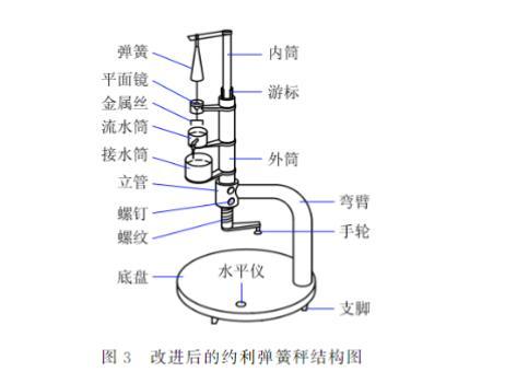因此,帶輪傳動(dòng)導(dǎo)致的誤差是測量誤差的主要來源,已經(jīng)超出讀數(shù)誤差的數(shù)量級,故通過游標(biāo)來增加讀數(shù)精確度的實(shí)驗(yàn)效果不理想。另外,在約利彈簧秤長期使用過程中,其內(nèi)部的帶輪傳動(dòng)結(jié)構(gòu)還易打滑、斷裂,致使內(nèi)筒不能平穩(wěn)升降,將導(dǎo)致約利彈簧秤無法正常工作,且修復(fù)困難。