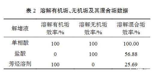 表2溶解有機(jī)垢、無(wú)機(jī)垢及其混合垢數(shù)據(jù)