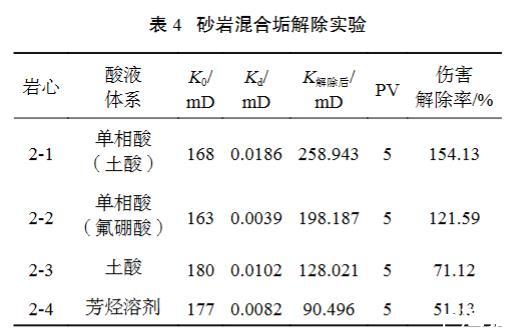 表4砂巖混合垢解除實(shí)驗(yàn)