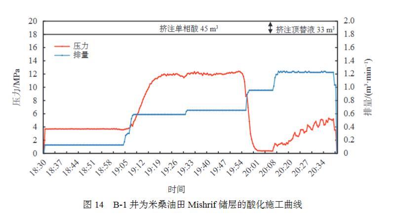 圖14 B-1井為米桑油田Mishrif儲(chǔ)層的酸化施工曲線(xiàn)