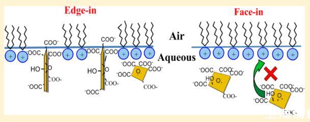 氧化石墨烯 (GO) 已證明 在生物醫(yī)學(xué)領(lǐng)域的各種有前途的應(yīng)用。 但 關(guān)于 GO 如何與細(xì)胞膜相互作用的信息或 模型系統(tǒng)仍然極其有限。 也是未知數(shù) GO 在與脂質(zhì)相互作用時(shí)會(huì)自我定向。 在這項(xiàng)研究中, Langmuir 單層技術(shù)應(yīng)用于空氣- 研究水/水界面的性質(zhì)和方向 GO 和脂質(zhì)模型之間的相互作用。 五脂 (DODAB、DSEPC、DSPC、DSPA 和 SA)具有相同的 18-碳烷基鏈但不同的電荷頭基被有意選擇以使可能的相互作用合理化。 實(shí)驗(yàn)結(jié)果表明,這種相互作用是由極性頭部基團(tuán)和 GO 之間的靜電相互作用控制的。 GO 可以摻入帶正電荷的脂質(zhì) DODAB 和 DSEPC 的單層,但不能摻入中性或負(fù)電荷的脂質(zhì) 帶電脂質(zhì)(DSPC、DSPA 和 SA)。 當(dāng) GO 被注入到帶正電荷的單層下面的亞相中時(shí) 脂質(zhì) DODAB 和 DSEPC,觀察到不同的表面壓力行為。 “edge-in”而不是“edge-in”的方向模型 提出了“face-in”來解釋GO對(duì)DODAB單層的吸附。