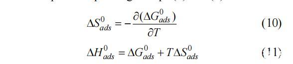 使用公式(9)[33]評(píng)估標(biāo)準(zhǔn)吉布斯吸附能D Ga0 ds: