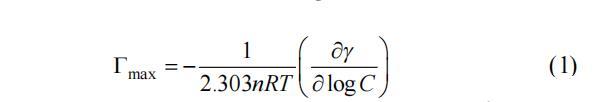 空氣/水界面吸附的有效測(cè)量方法是通過表面過剩量,Γmax(mol?m-2),通過吉布斯吸附方程計(jì)算[27]: